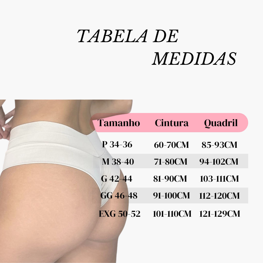 As calcinhas seguem o modelo fio duplo e possuem cintura alta, garantindo uma leve compressão que valoriza a silhueta e proporciona segurança ao longo do dia. Feitas com forrinho 100% algodão, elas oferecem um toque suave e respirável, ideal para ser usada sob qualquer tipo de roupa, seja no dia a dia ou durante atividades físicas.